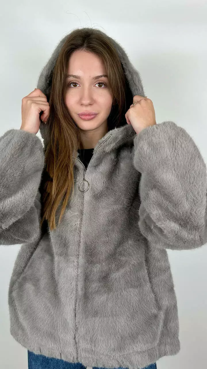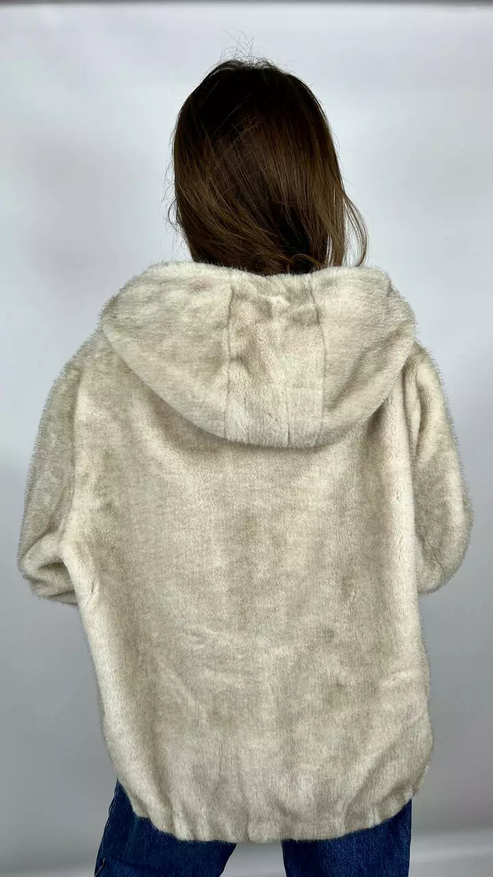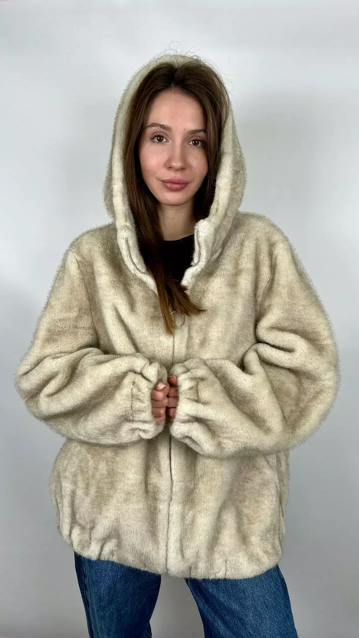 Жіноча еко-шубка з капюшоном