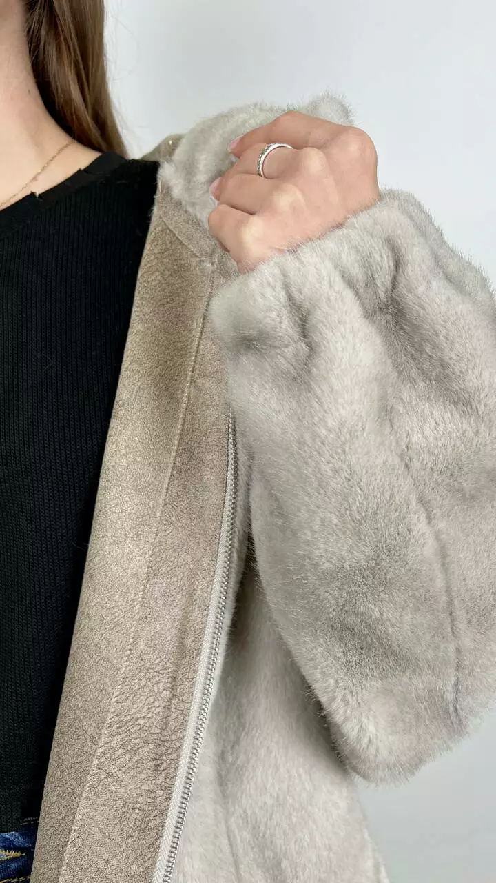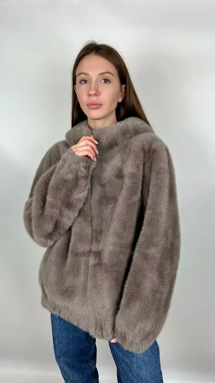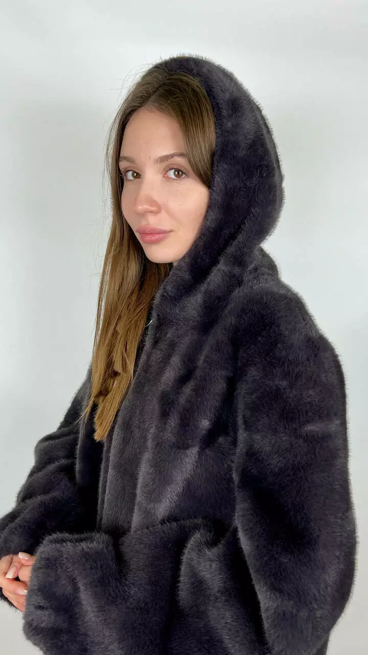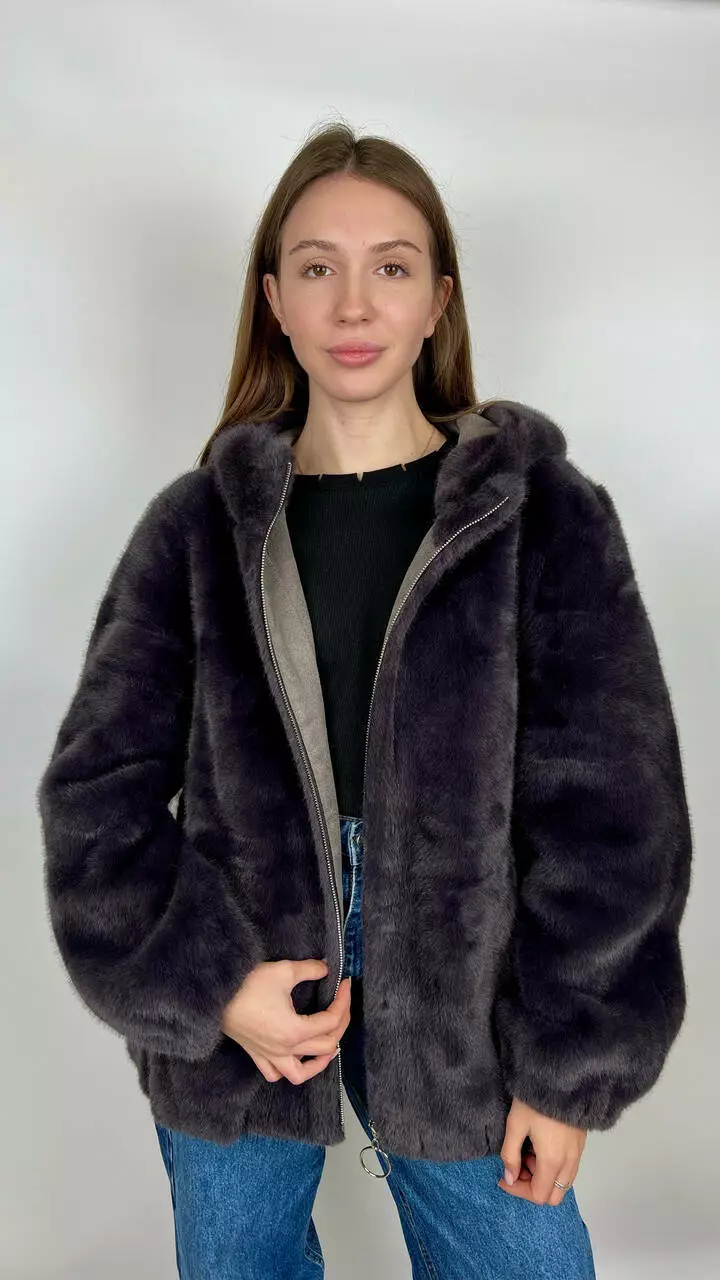Жіноча еко-шубка з капюшоном