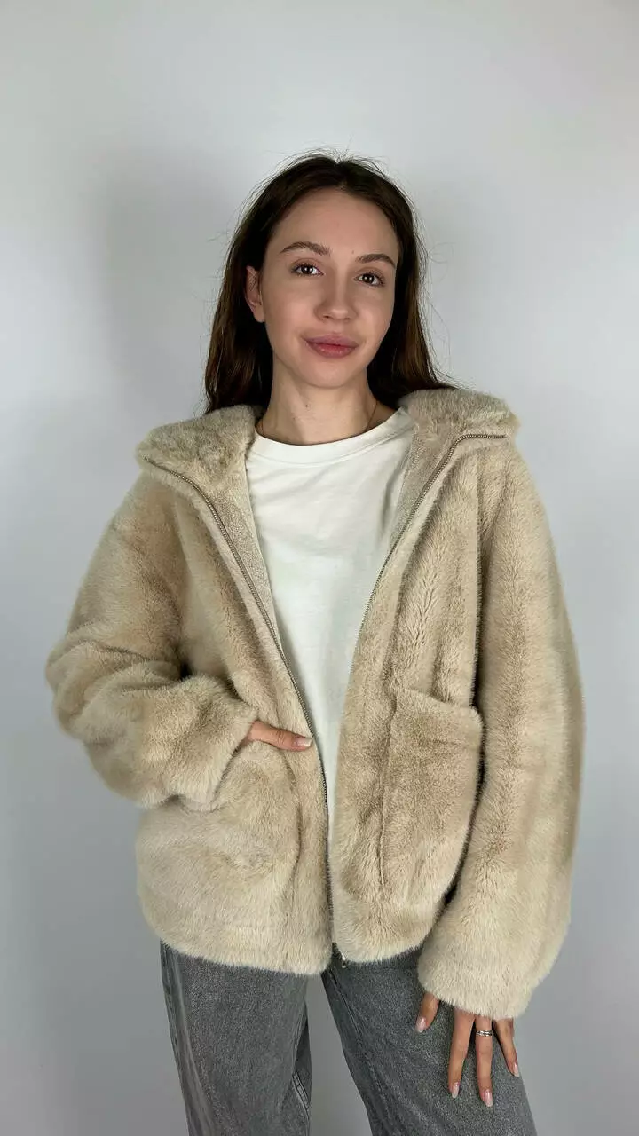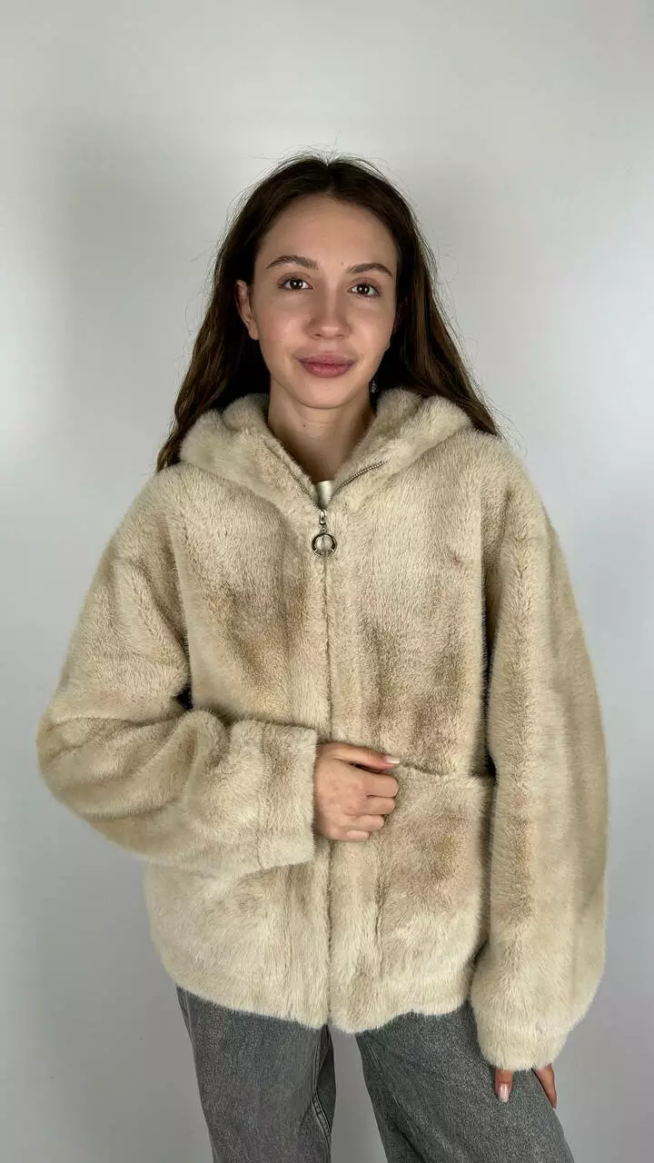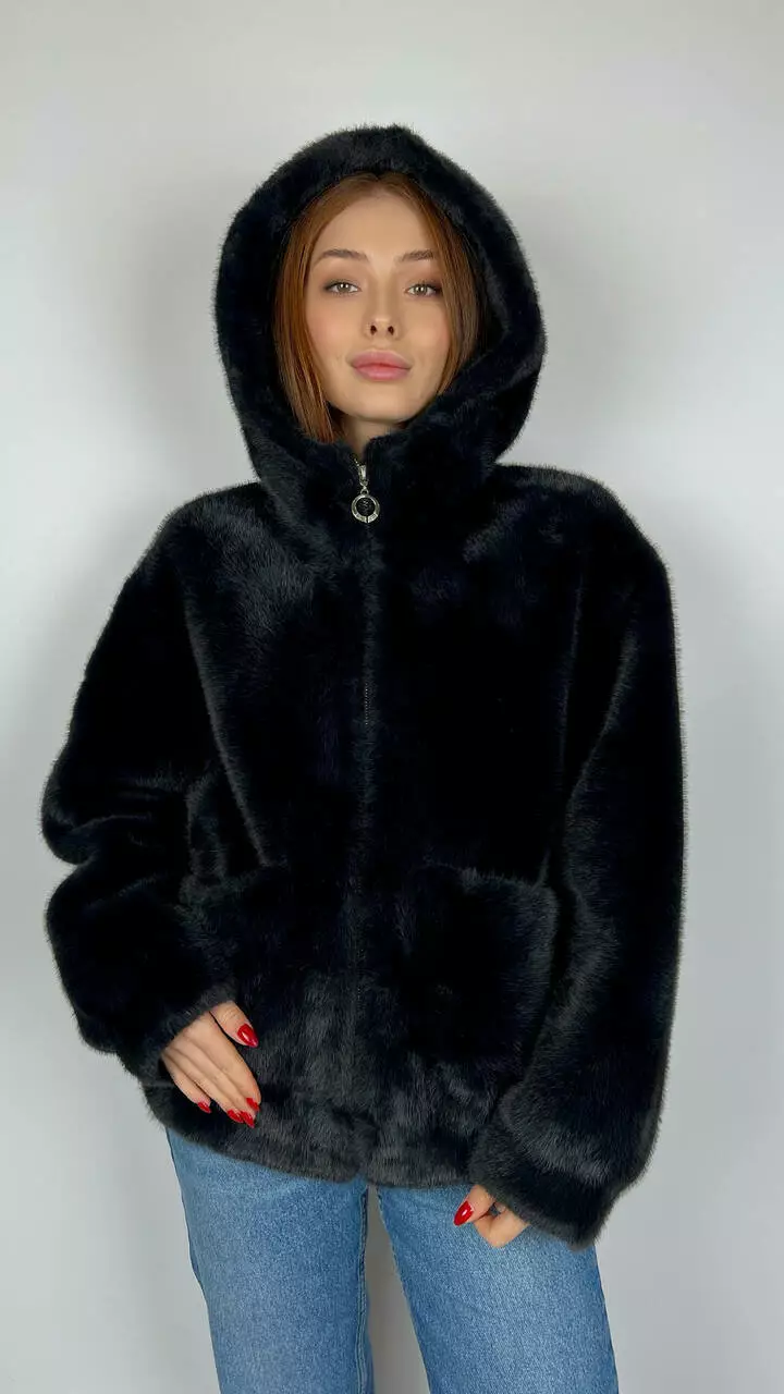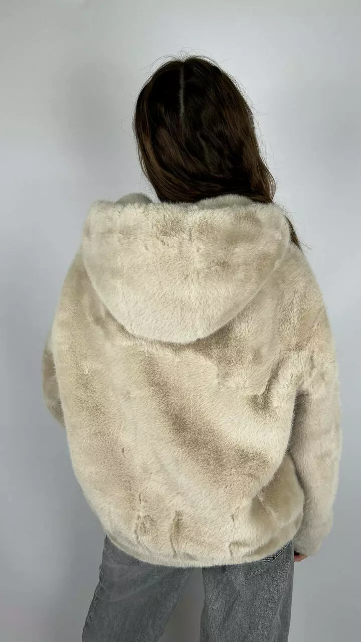 Жіноча еко-шубка з капюшоном