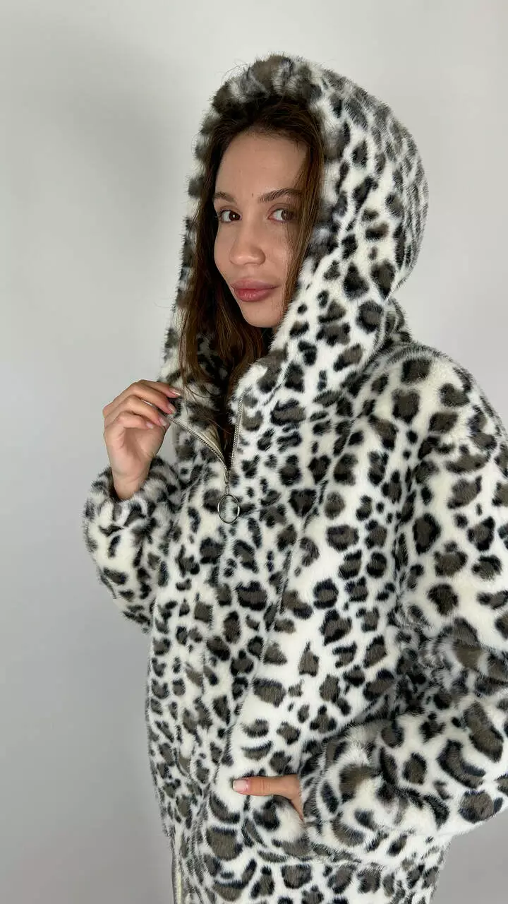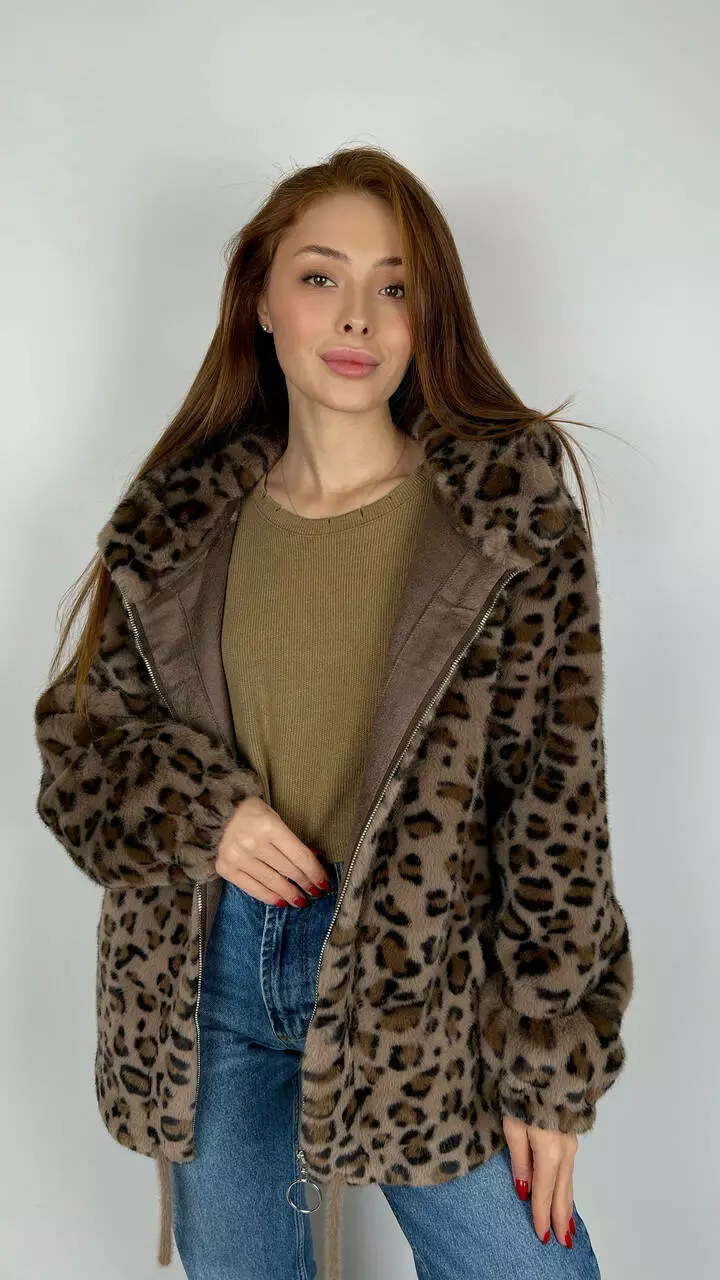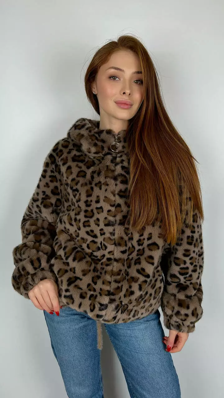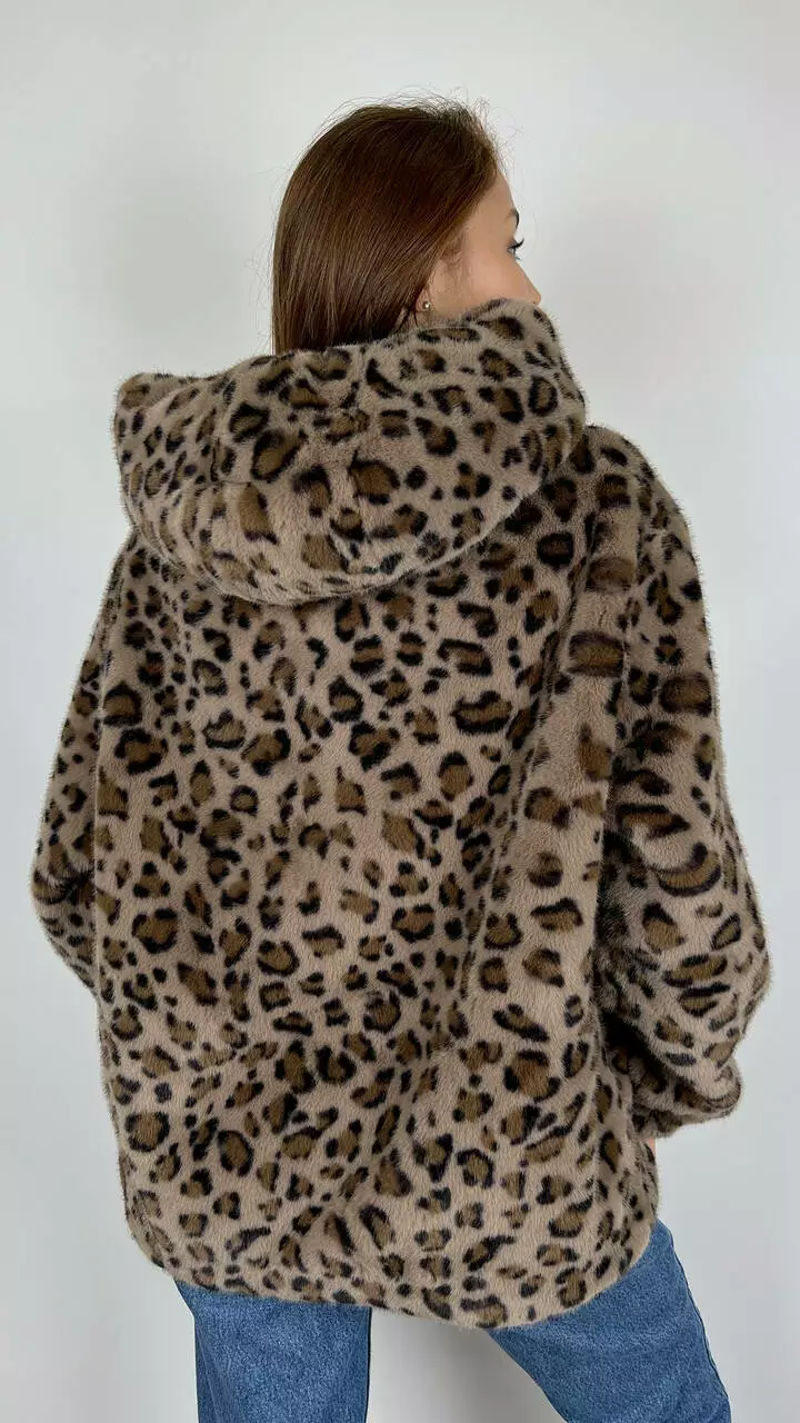 Жіноча леопардова еко-шубка